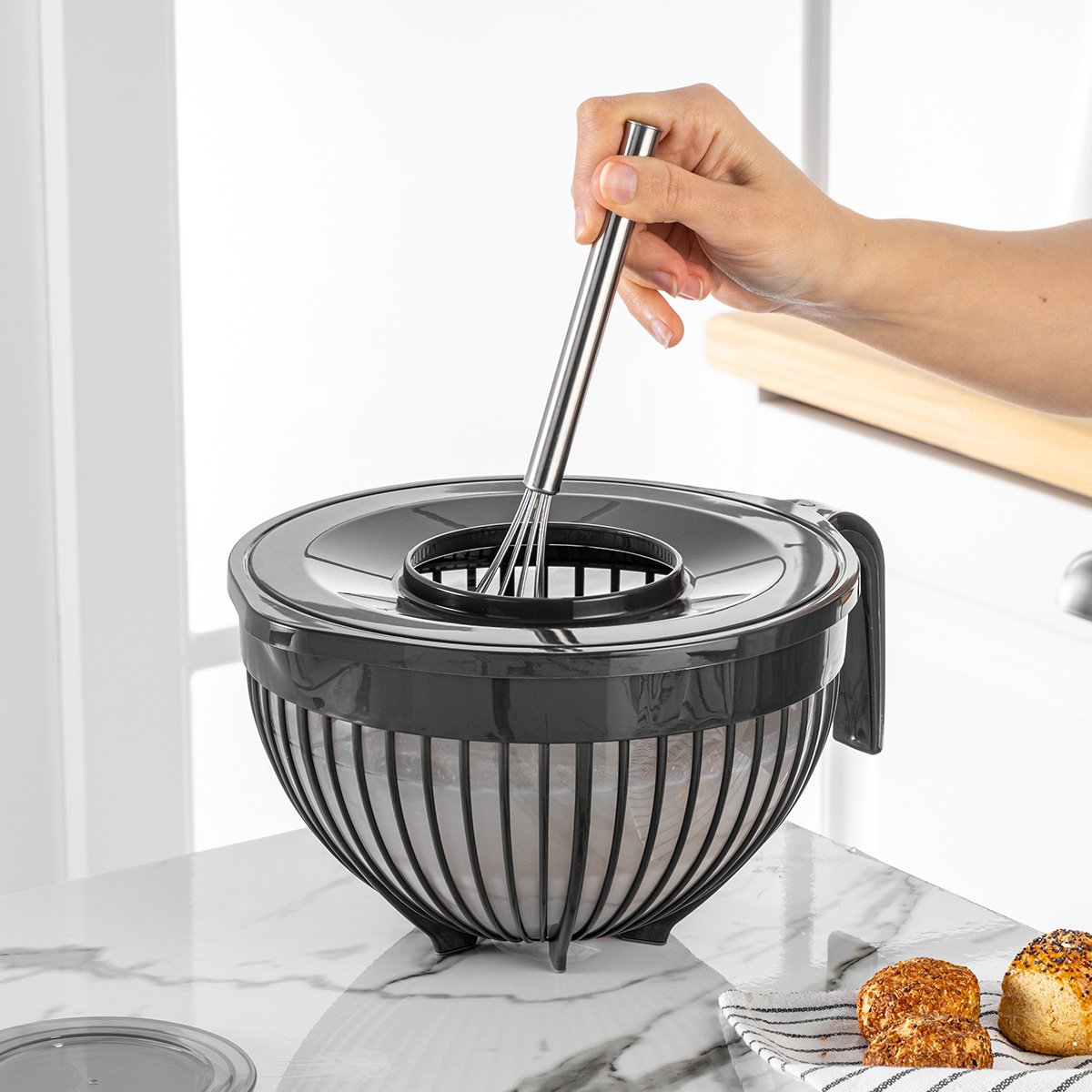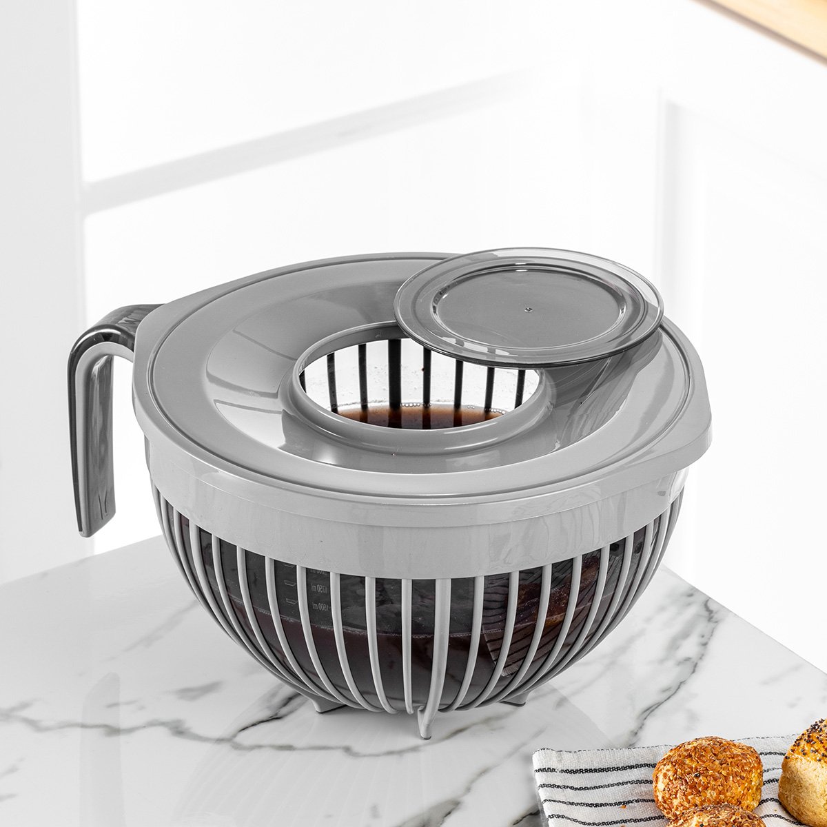 Mezclador con tapa «Poli Line» de 3 litros. Perfecto para preparar y guardar mezclas, adobos o bebidas.