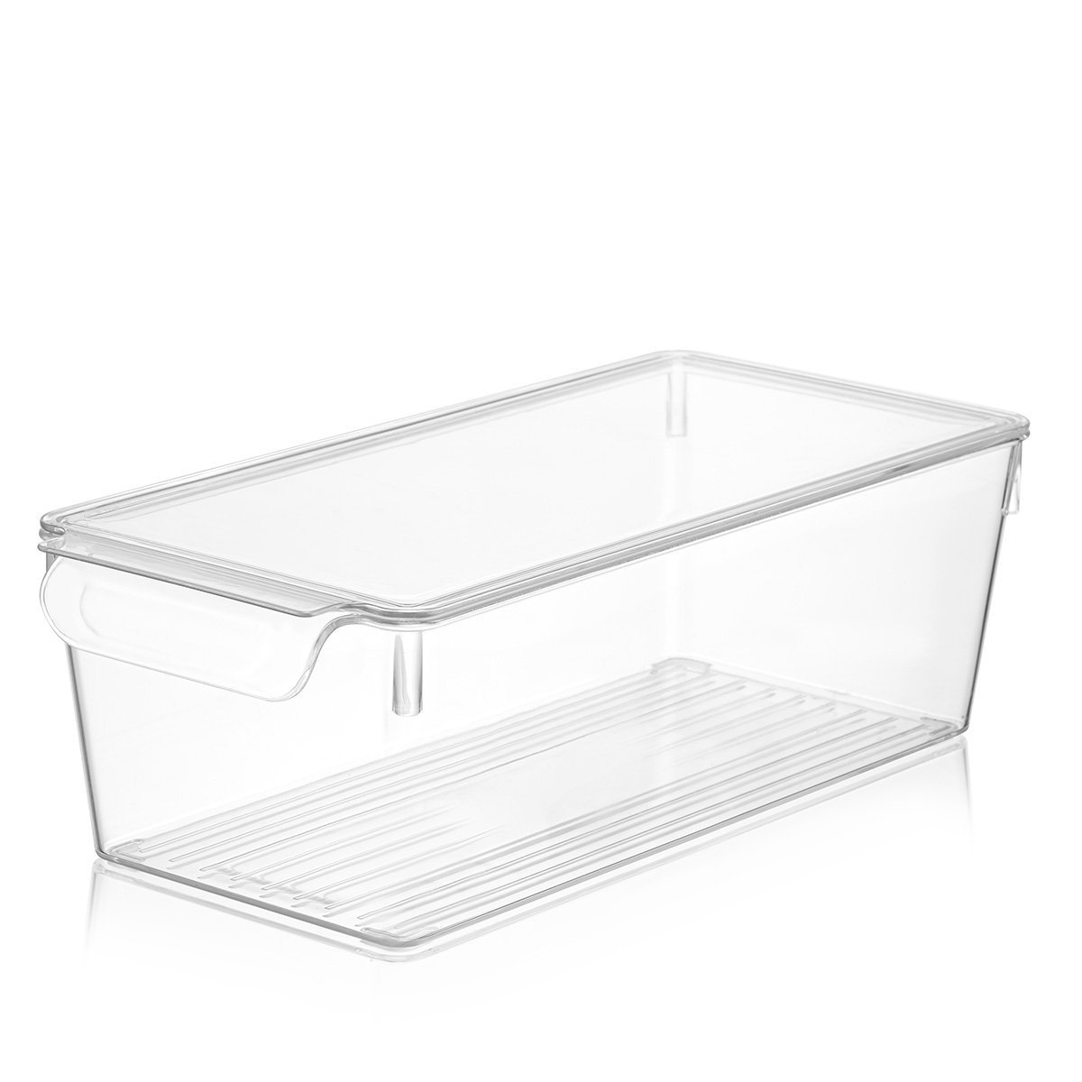 Organizador de nevera con tapa de 4.9 litros. Amplia capacidad para almacenar y proteger tus alimentos en el refrigerador.