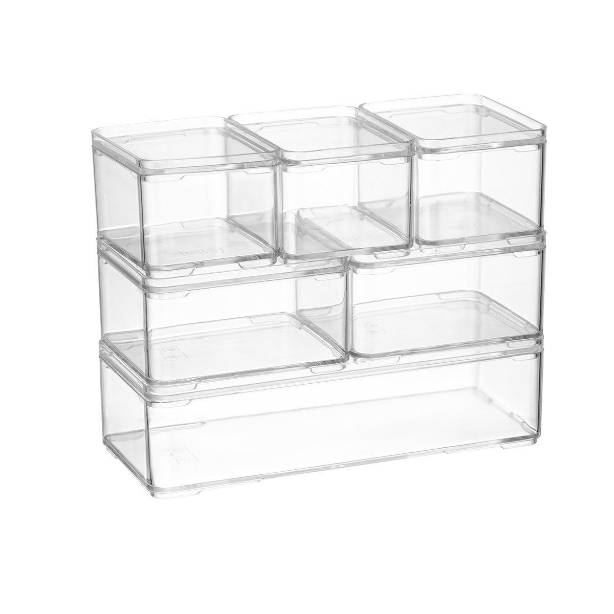 Set de recipientes modular de 6 piezas. Diseño apilable para ahorrar espacio y organizar tu despensa de forma efectiva.